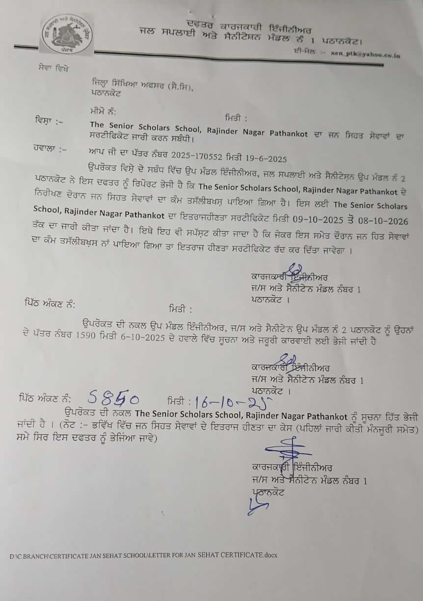 | 1 | NAME OF SCHOOL | THE SENIOR SCHOLARS SCHOOL PATHANKOT |